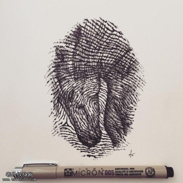 手稿指纹的马儿纹身图案
