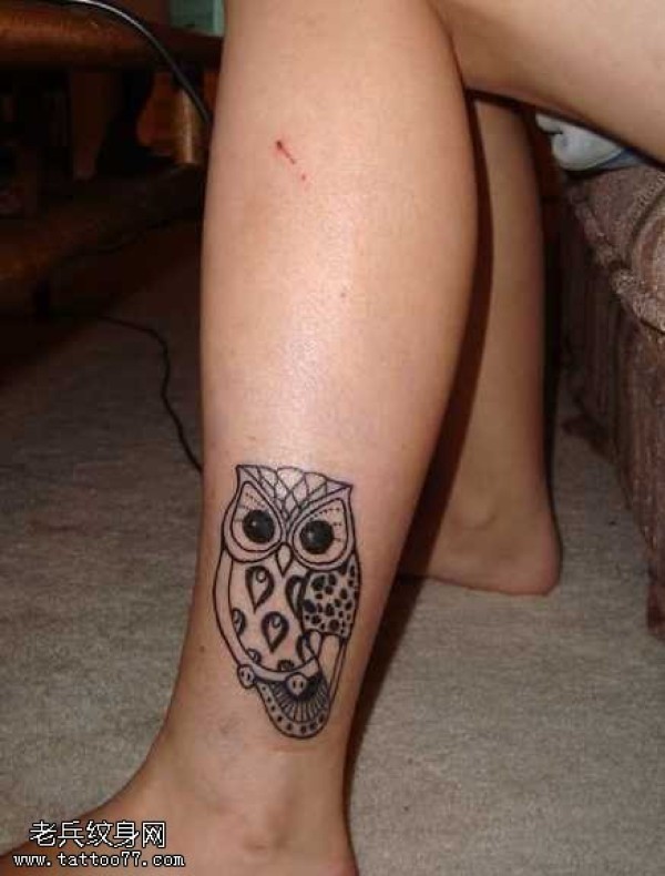 脚部漂亮的猫头鹰图腾纹身图案