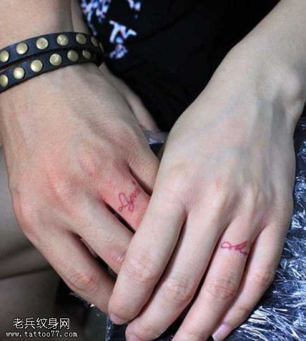 手指红色时尚情侣纹身图案