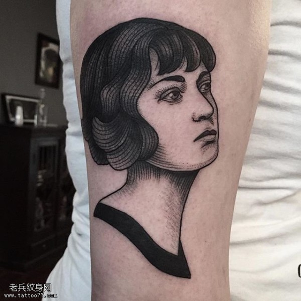 女性肩部肖像刺青_肖像纹身图案大全_纹身图吧