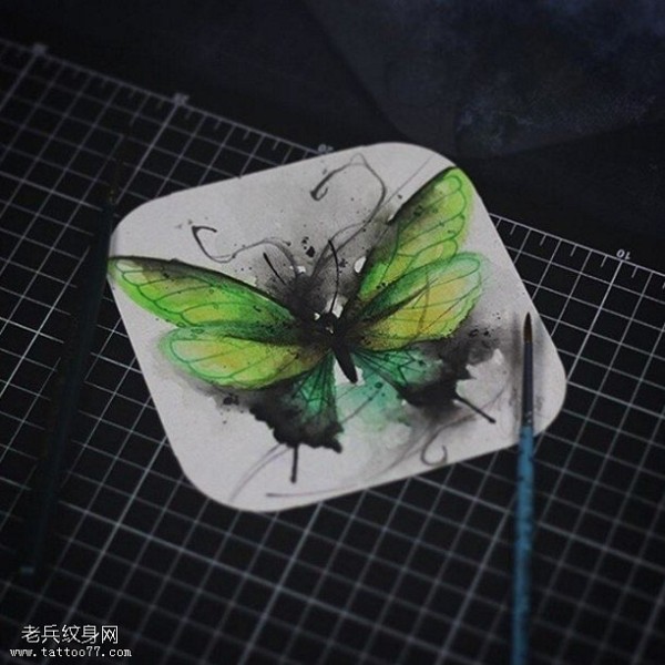 手稿水墨一只蝴蝶纹身图案