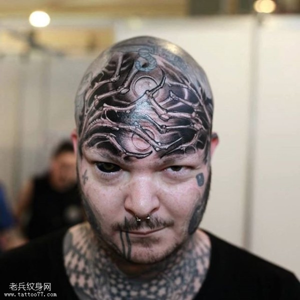 霸气男头部时尚纹身图片_头部纹身图案大全_纹身图吧