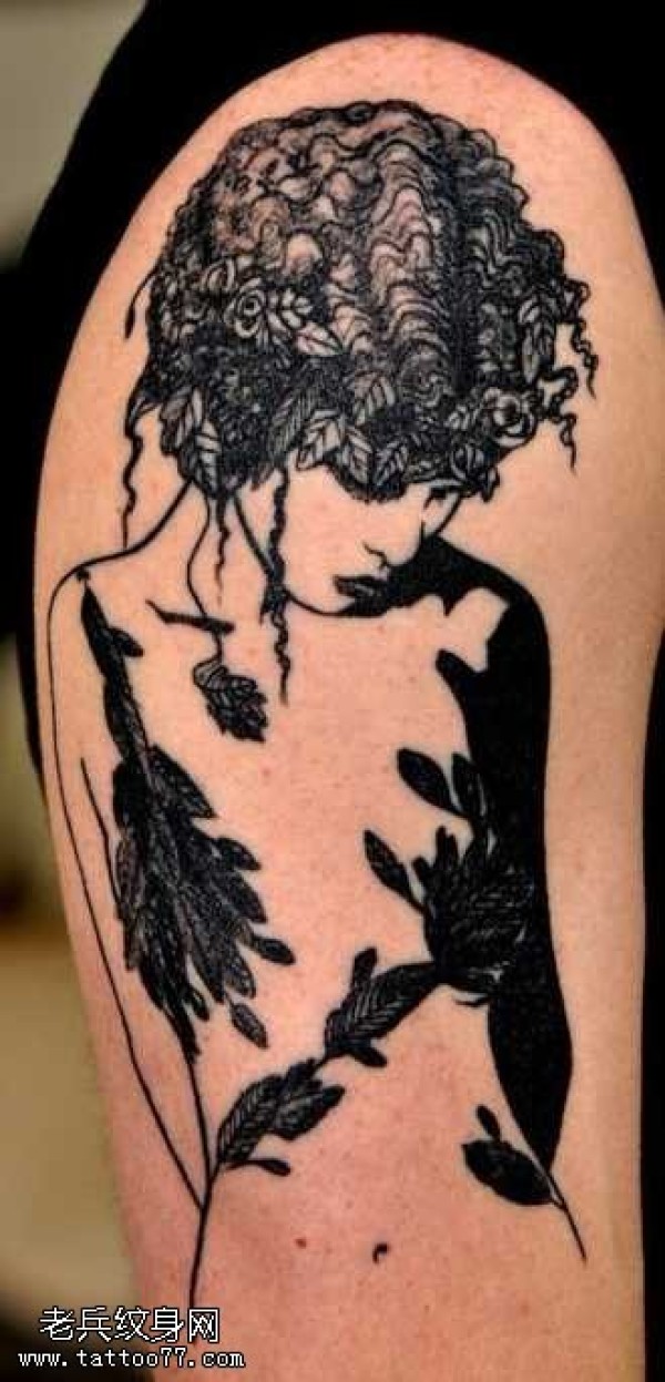 胳膊黑白美女头像纹身图案