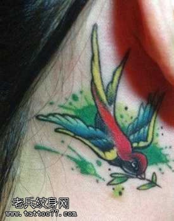 多款女生耳后黑色线条素描文艺小清新小图案纹身图案