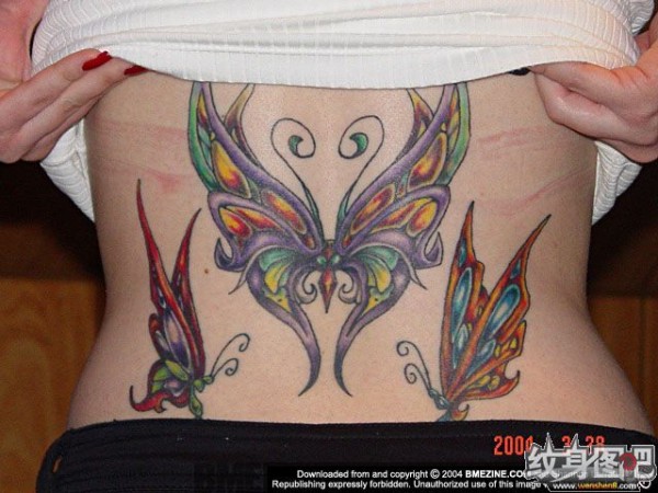 分享一款腰部时尚性感的蝶恋花纹身图案_腰部纹身图案大全_纹身图吧