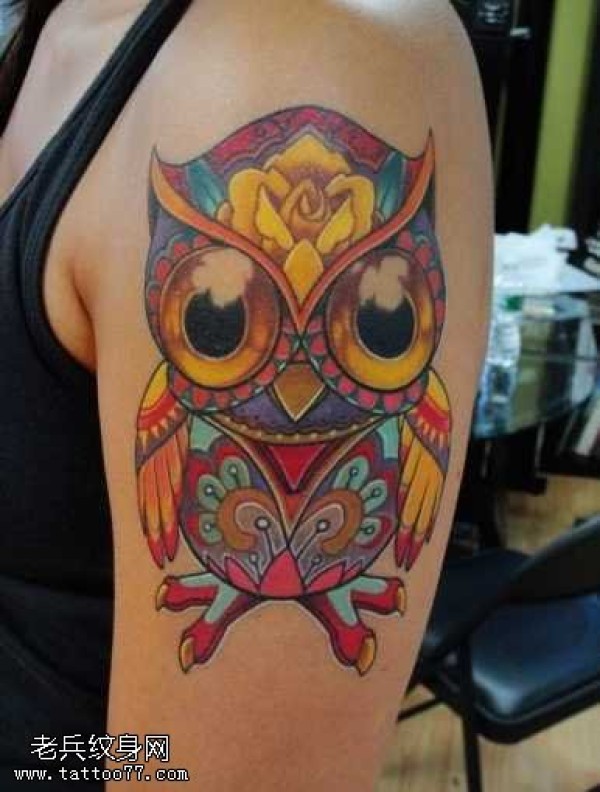 胳膊可爱的大雁猫头鹰纹身