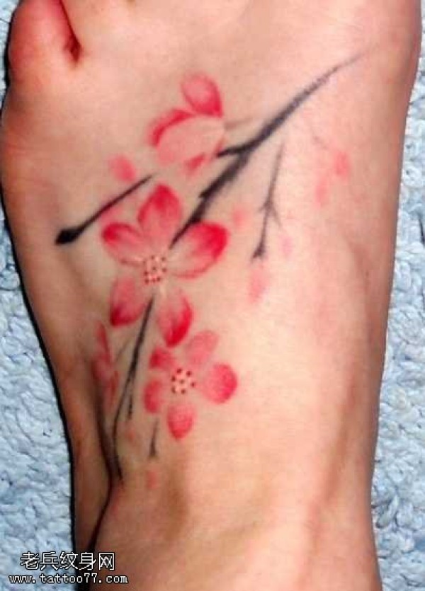 清新小桃花脚踝纹身_脚部纹身图案大全_纹身图吧