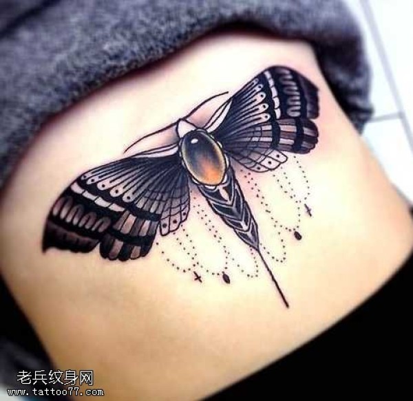 腰部一只飞蛾纹身图案