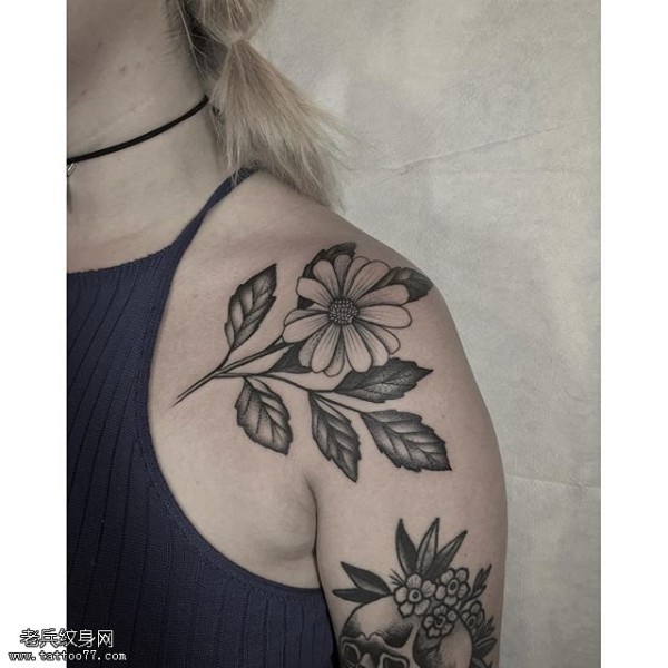 后肩唯美花藤英文图案图片_植物纹身图案大全_纹身图吧