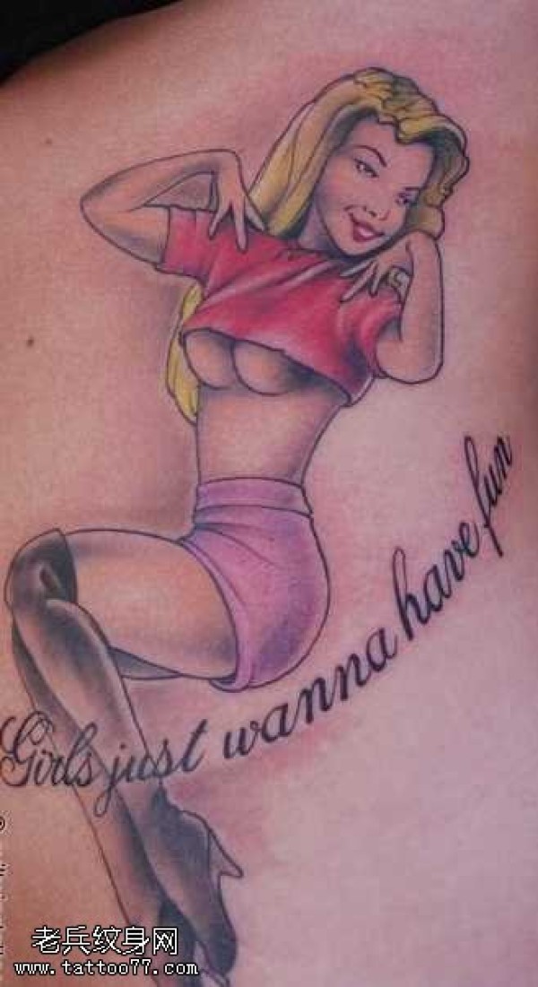 分享一款腰部时尚性感的蝶恋花纹身图案_腰部纹身图案大全_纹身图吧