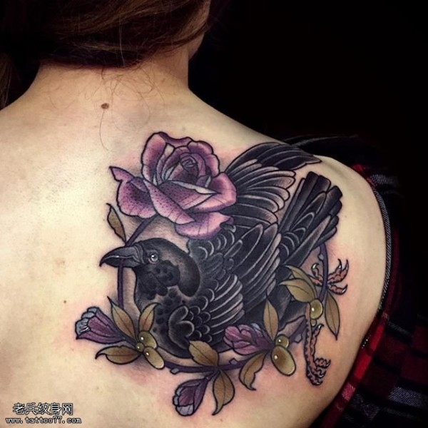 女生肩花纹身_15张女性双肩对称的肩花纹身图案作品图片