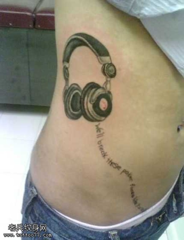 腰部耳机英文纹身图案
