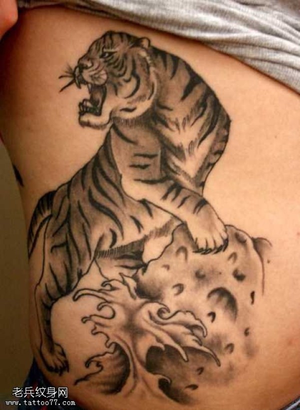 侧腰霸气老虎头纹身_腰部纹身图案大全_纹身图吧