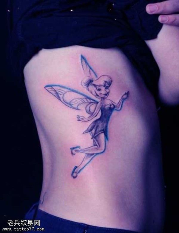 分享一款腰部时尚性感的蝶恋花纹身图案_腰部纹身图案大全_纹身图吧