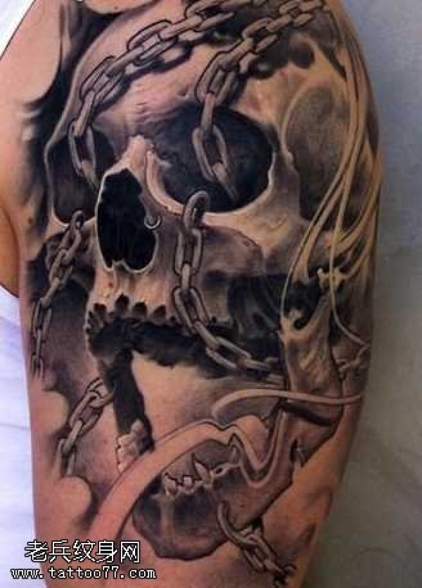 骷髅头与锁链纹身图案