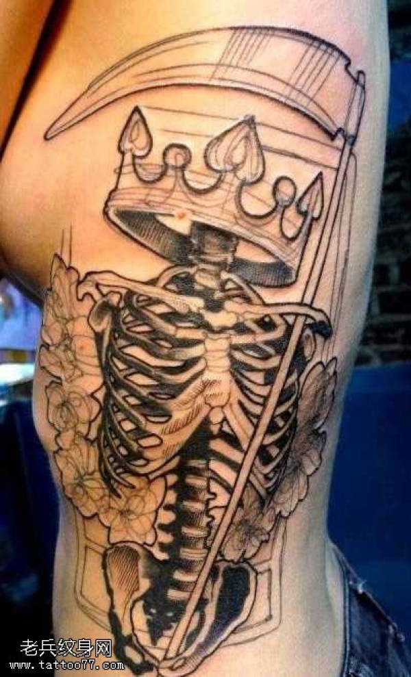 侧腰女骷髅刺青图案图片_骷髅纹身图案大全_纹身图吧