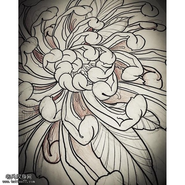 素描线条菊花纹身图案
