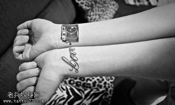 手臂相机英文纹身图案