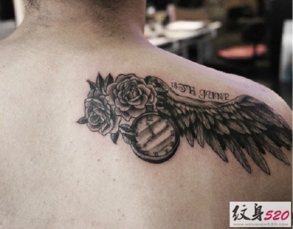 个性后背部时钟钟表纹身