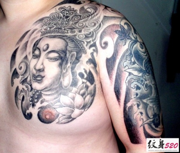 女生肩花纹身_15张女性双肩对称的肩花纹身图案作品图片
