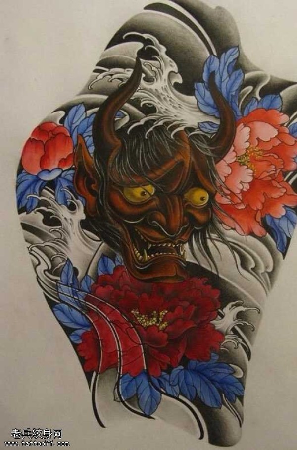 能面万媚纹身手稿_52张日式能剧面具纹身手稿图案素材欣赏