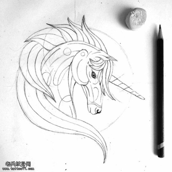手稿线条独角兽纹身图案