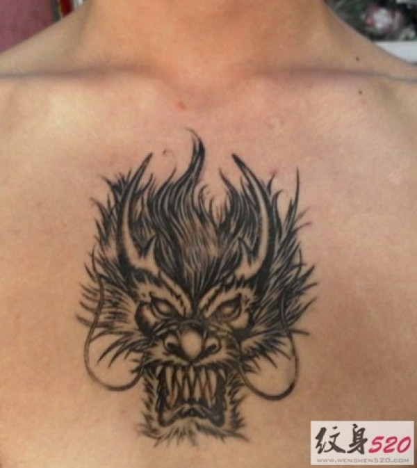 威猛霸气的胸前龙头纹身