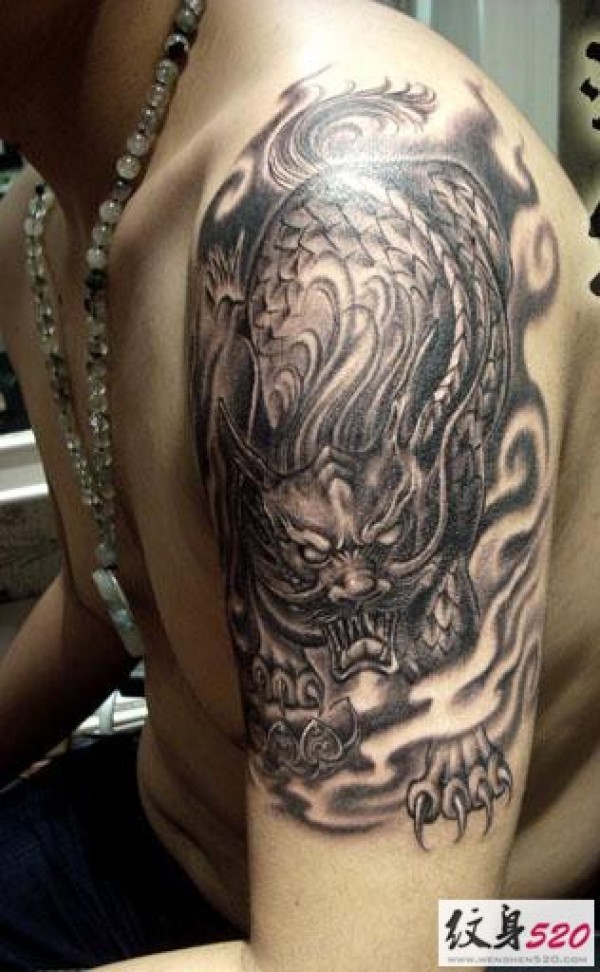 手臂大臂上经典的麒麟纹身图案