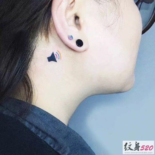 多款女生耳后黑色线条素描文艺小清新小图案纹身图案