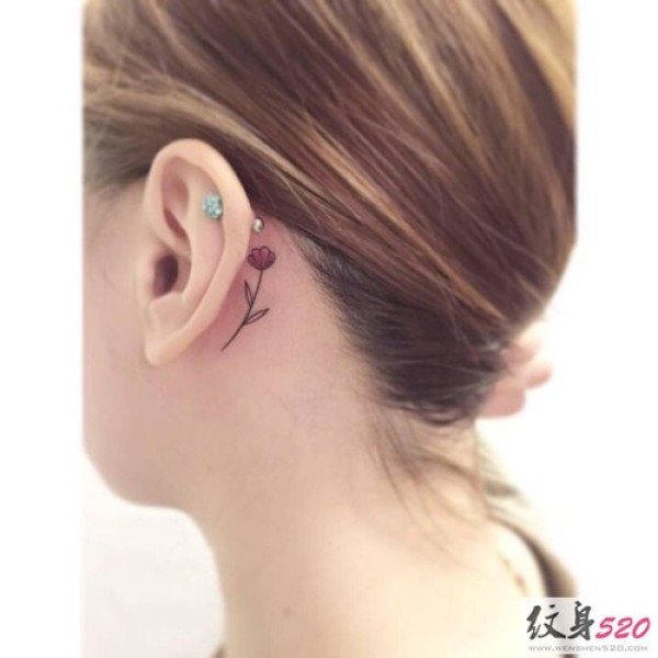 多款女生耳后黑色线条素描文艺小清新小图案纹身图案