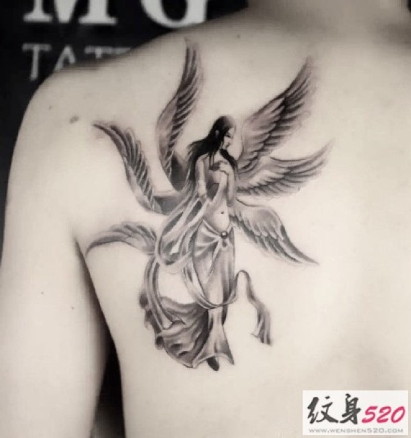 后背上的欧美风格天使纹身