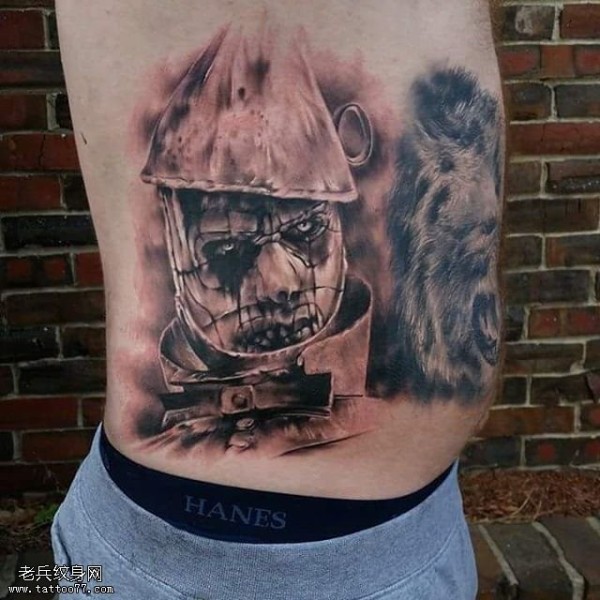 侧腰霸气老虎头纹身_腰部纹身图案大全_纹身图吧