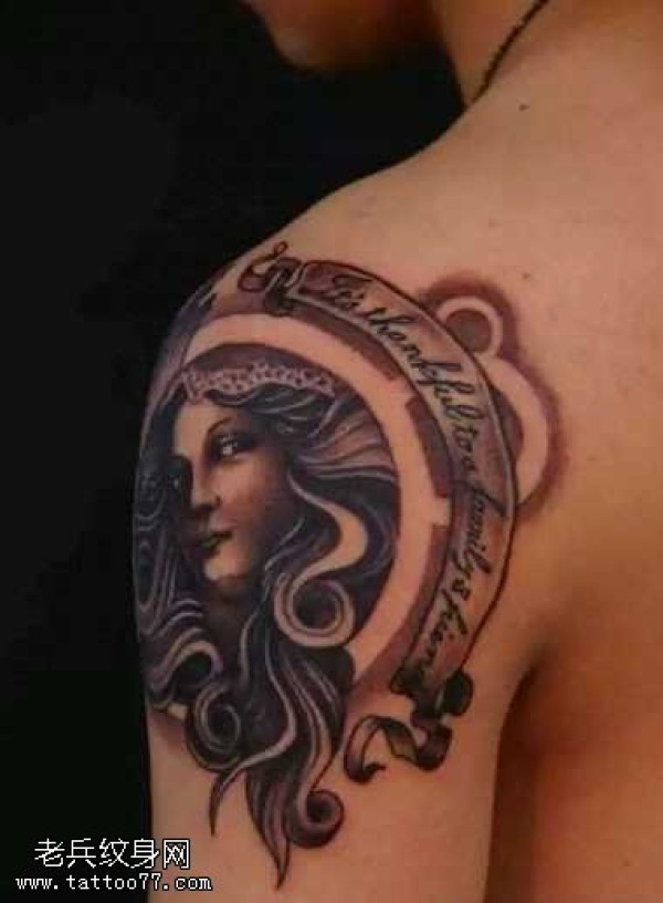肩部美女头像纹身图案