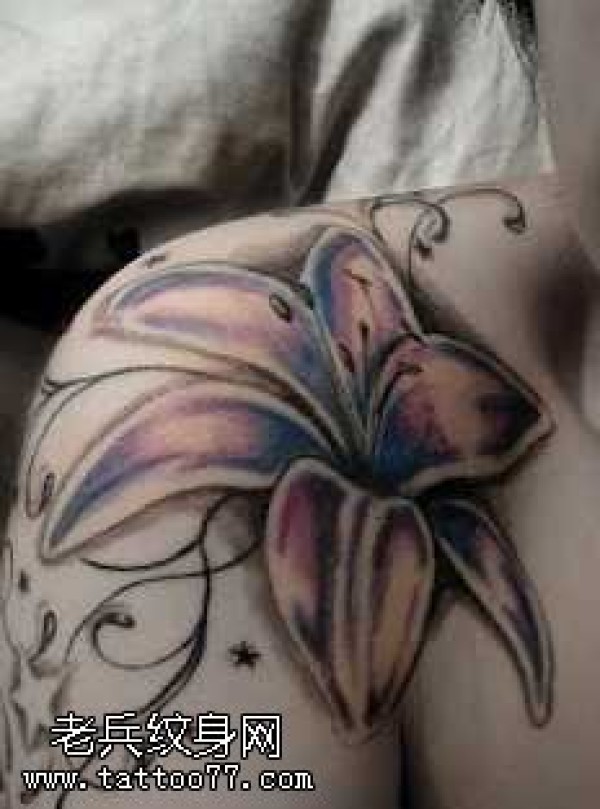 女性肩膀上多款漂亮的花朵纹身图案