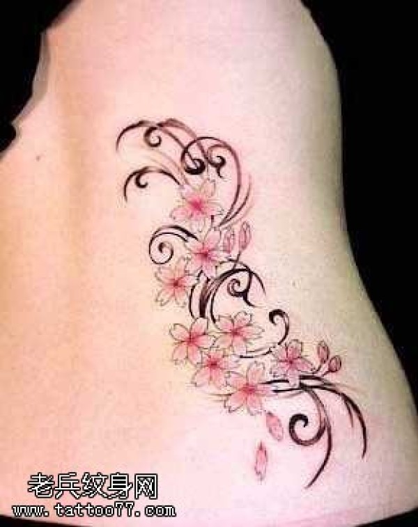 分享一款腰部时尚性感的蝶恋花纹身图案_腰部纹身图案大全_纹身图吧