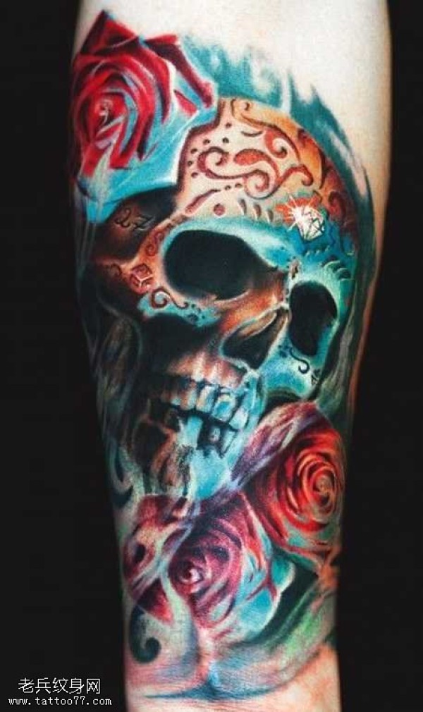 腿部帅气好看的骷髅纹身图案