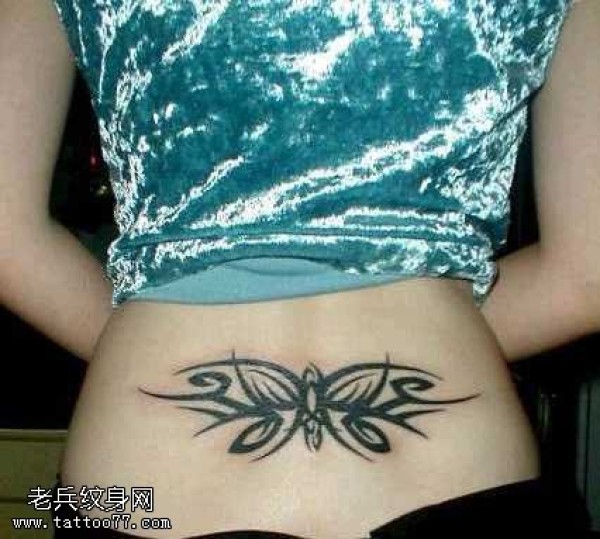 分享一款腰部时尚性感的蝶恋花纹身图案_腰部纹身图案大全_纹身图吧
