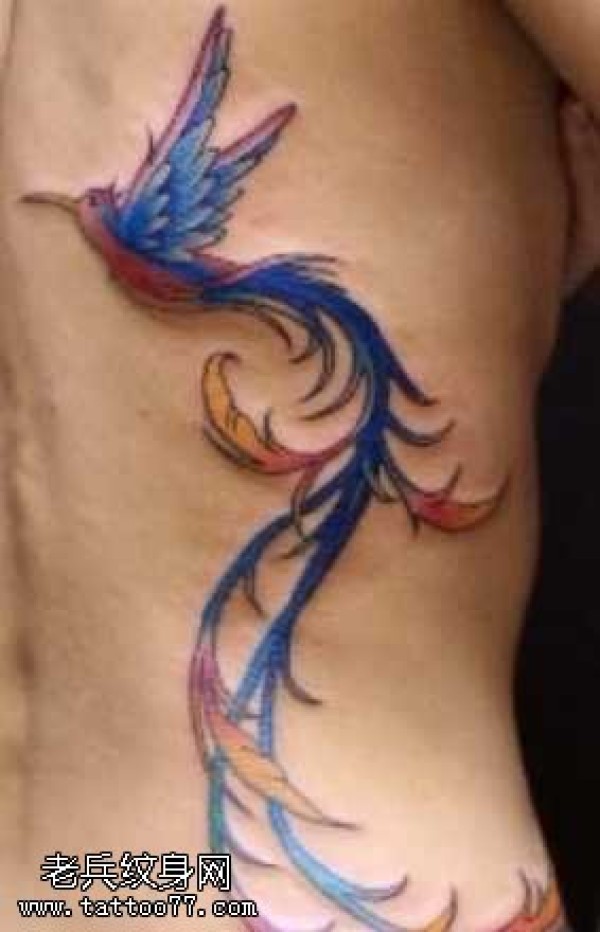 分享一款腰部时尚性感的蝶恋花纹身图案_腰部纹身图案大全_纹身图吧
