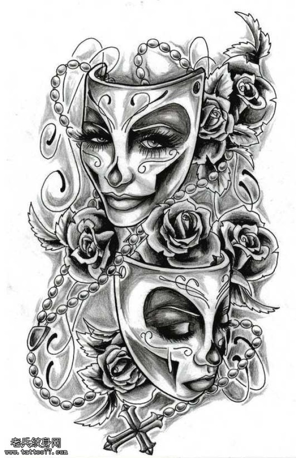 手稿大气的面具纹身纹身图案