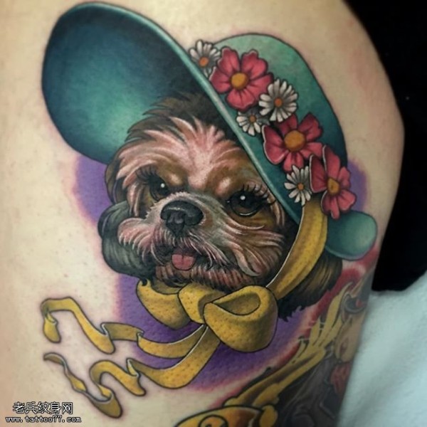 大腿部漂亮的狗狗纹身图案