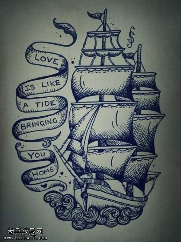手稿一张帆船纹身图案