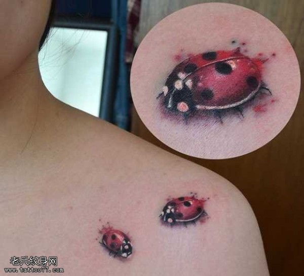 女生肩花纹身_15张女性双肩对称的肩花纹身图案作品图片