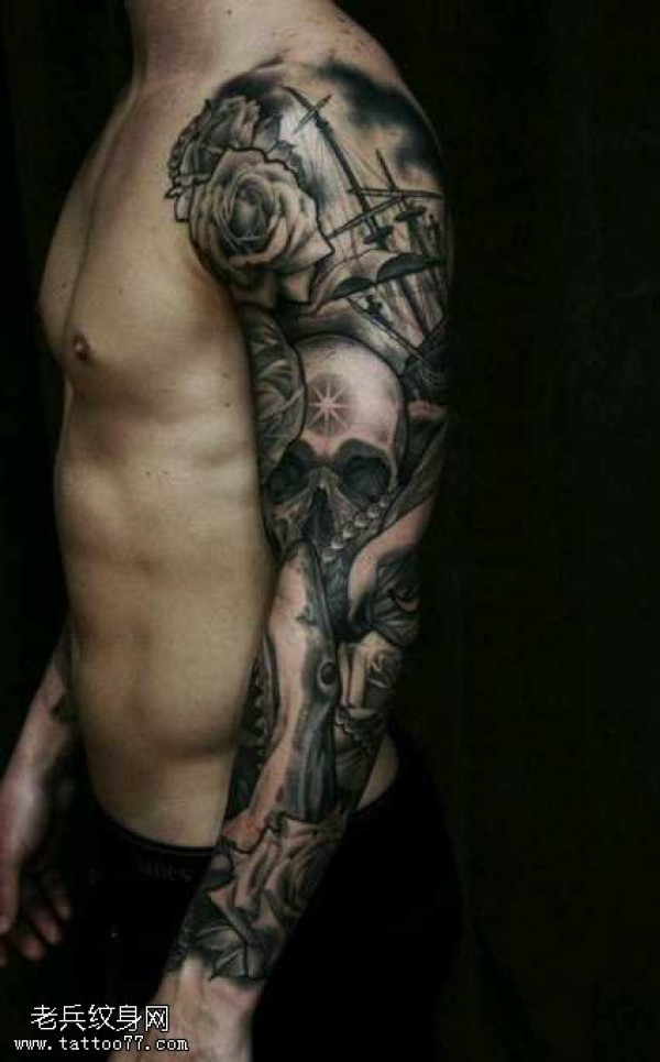花臂时尚的骷髅纹身图案