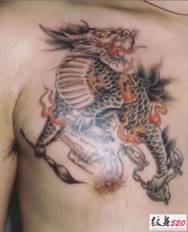 纹身图案胸部男 简洁大方的男生胸部纹身图案