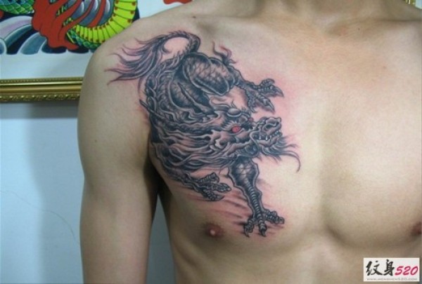 男士胸前经典的麒麟神兽纹身大全