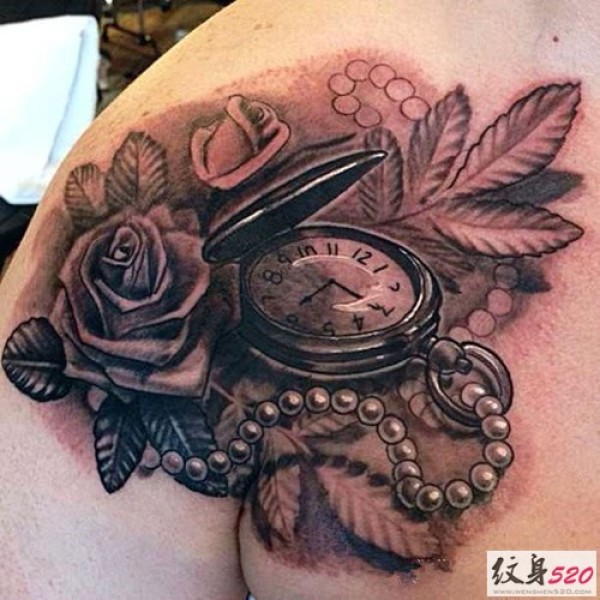 肩部潮流钟表时钟纹身