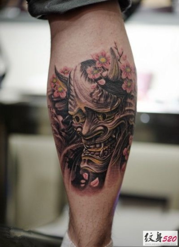 腿部小腿部个性般若纹身