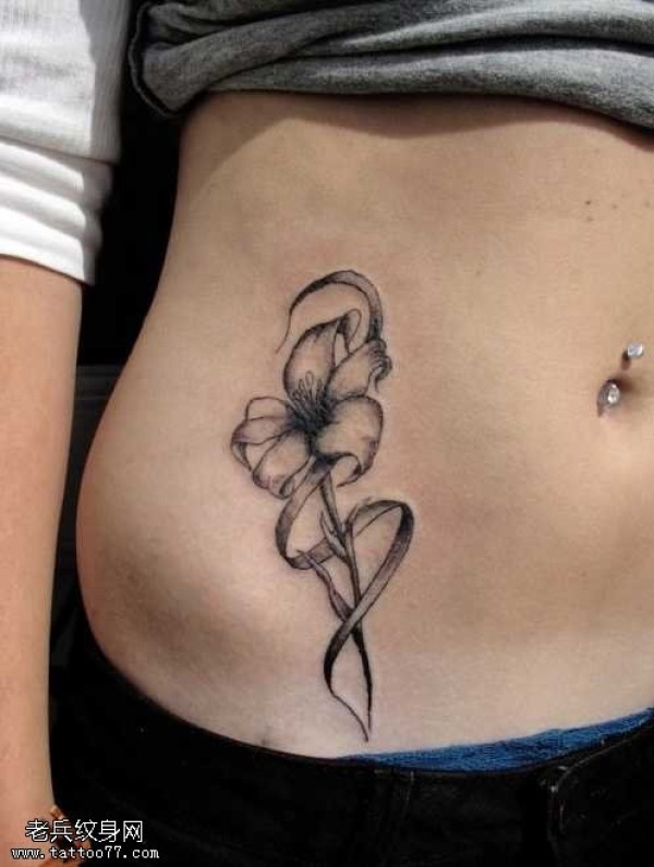 腹部漂亮的花朵纹身图案