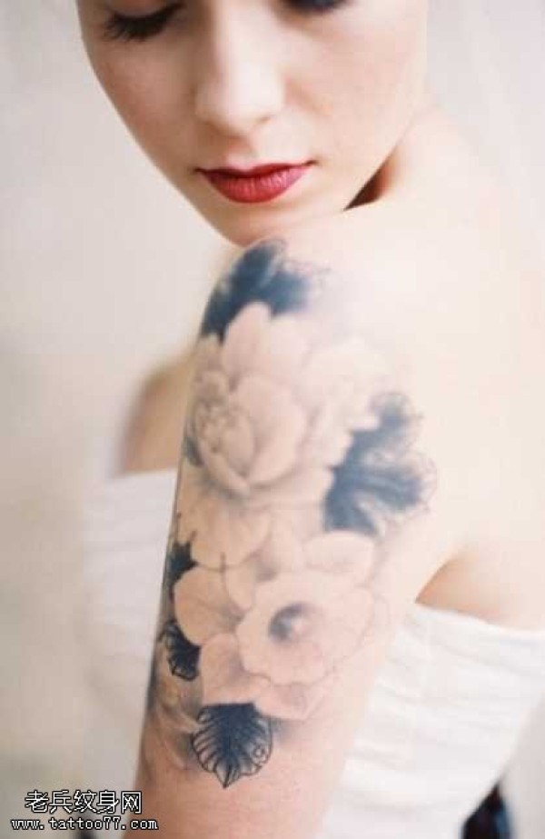 女生肩花纹身_15张女性双肩对称的肩花纹身图案作品图片