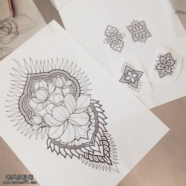 曼陀罗点刺梵花_100张曼陀罗点刺梵花纹身手稿图案